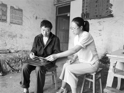 魏丽娟(右)走访杨小兵家 受访者供图