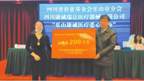 “乐山康诚医疗爱心基金”由四川康诚瑞达医疗器械有限公司捐资200万元建立,将和四川省扶贫基金会乐山市分会、乐山市扶贫开发协会一道开展“医疗救助·仁爱行动”公益项目,帮扶对象包括符合医疗救助条件的脱贫不稳定户、边缘易致贫户、因病因灾因意外事故生活困难户、五保户等。患者在沐川新区中医医院有限责任公司下属医院治疗后,给予每人(例)住院治疗患者不超过500元补助,其中在正常医保报销外,剩余费用不足500元的,由“乐山康诚医疗爱心基金”全额补助;超过500元的由“乐山康诚医疗爱心基金”按照每人(例)500元进行补助。对没有参加医保的住院患者,住院治疗后总费用不足500元的由“乐山康诚医疗爱心基金”按照每人(例)实际费用进行救助,超过500元以上的由“乐山康诚医疗爱心基金”按照每人(例)500元进行补助。
