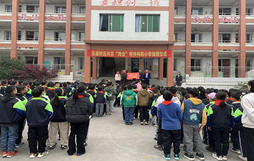 五通桥区教育局总督学余学润对五通区扶贫“两会”的爱心善举表示感谢,他要求向阳小学全体教师认真工作,提高教育教学水平。向阳小学校长黄勇健在仪式上再次感谢区扶贫“两会”以及爱心人士,长长帮扶路,拳拳助学情,爱心无止境,助学见真情,他代表全校教职工郑重承诺,将加倍努力工作,切实提高教育教学水平,把向阳小学办成老百姓认可、社会满意的学校,也希望同学们牢固树立爱党、爱国思想,五育并举,全面发展,争做团结友爱,文明礼貌,有责任感、紧迫感和使命感的新时代好少年。