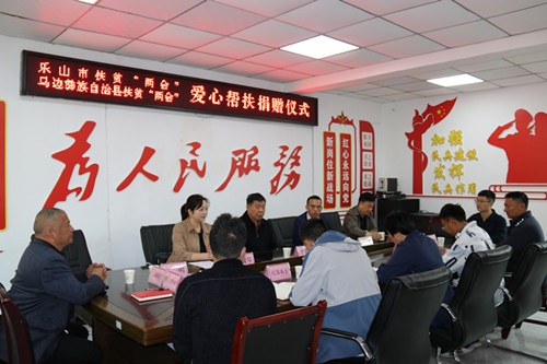 近日,乐山市扶贫“两会”、马边彝族自治县扶贫“两会”爱心帮扶捐赠活动在烟峰镇举行。乐山市扶贫“两会”会长李长江率领马边扶贫“两会”、深圳市乐山商会相关负责同志将7.7万元医疗救助资金送到烟峰镇梅子湾村李妈麻和二坝村吉尼日娘两位白血病患者家属手中,向他们传递社会关爱。
