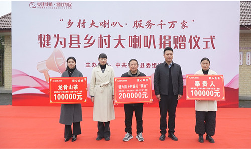为助力乡村治理,促进乡村全面振兴。近日,犍为县乡村振兴“两会”帮扶资助我县“乡村大喇叭·服务千万家”公益项目资金20万元,爱心企业“奉贵人”、“龙骨山茶”茶业有限公司各捐赠资助10万元,共帮扶资助40万元。该公益项目旨在坚持党建引领,充分发挥“乡村大喇叭”在宣传党的方针政策、推进基层治理、建设文明乡风中的重要作用,以“乡村大喇叭·服务千万家”活动为载体,在“建、管、用”上下真功、用实劲,着力把乡村大喇叭打造成为党的政策“扩音器”、干群融合“连心桥”、村民致富“信息站”。实现“村村都能响、组组听得见、户户听得清”。
