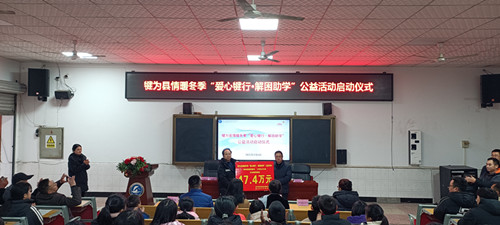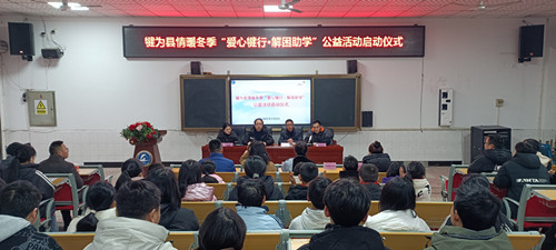2025年1月8日,犍为县情暖冬季“爱心犍行·解困助学”公益活动启动仪式在县罗城高中举行,县乡村振兴“两会”常务副会长兰炜、县教育局副局长彭远洪出席并讲话,会议由县农业技术推广中心主任杨睿主持,罗城高中校长王文全致辞,现场举行了捐赠资助授牌仪式;受助困难家庭学生代表作感恩发言。县民政局副局长杨柳、县残联副理事长张民敏、罗城镇人大主席邱康、爱心企业代表犍为县伊米阳光超市有限公司总经理行政助理王敏以及师生代表共计70余人参加仪式。