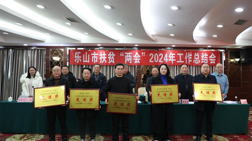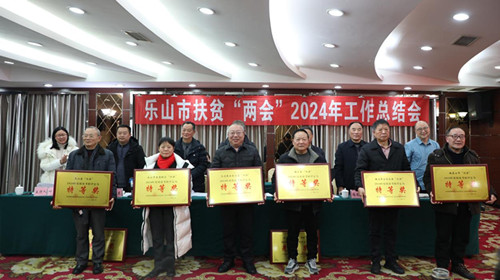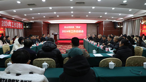 1月16日下午,乐山市扶贫“两会”在金叶大酒店召开2024年工作总结会。市扶贫“两会”党委书记李长江,市扶贫“两会”专家组成员、乐山市人民政府原副市长范金绶,市扶贫“两会”专家组成员,市人大常委会原副主任罗国荣,市扶贫“两会”专家组成员、中共乐山市委农工委原主任、市农业局原局长梅朝富,市农业农村局党组成员、副局长王维东,市扶贫“两会”常务副会长罗远强,以及各县(市、区)扶贫“两会”会长、副会长等相关负责同志参加会议。副会长叶维主持会议。