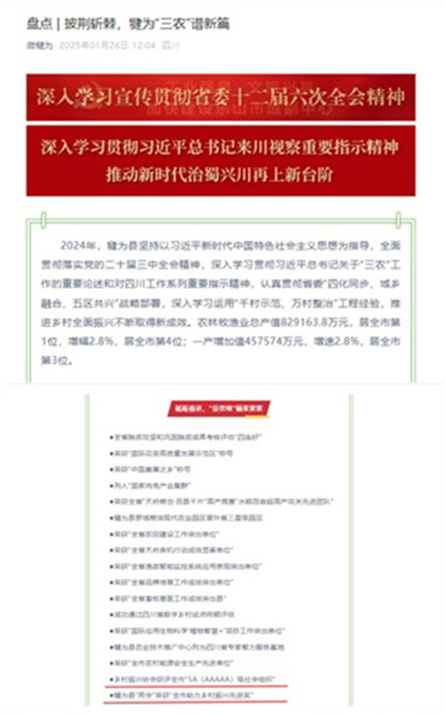 2025年年初,微犍为以“盘点 | 披荆斩棘,犍为‘三农’谱新篇”为题专题报道了2024年我县三农工作取得的成效,其中犍为县乡村振兴协会获评全市“5a(aaaaa)级社会组织”、犍为县“两会”荣获“全市助力乡村振兴先进奖”、在全市率先试点开展乡村医疗互助公益项目等社会帮扶亮点引人注目,为我县巩固拓展脱贫攻坚成果、助力全面乡村振兴持续赋能。