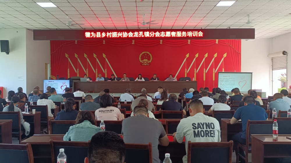 4月18日,犍为县乡村振兴“两会”在龙孔镇举行专场乡村振兴分会志愿者服务培训会。市扶贫“两会”副会长兼秘书长叶维、县乡村振兴“两会”会长罗显成、常务副会长兰炜、副会长兼秘书长梁恩好及龙孔分会志愿者110余人参加培训学习。
