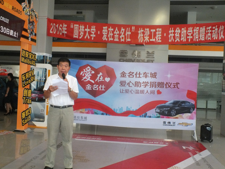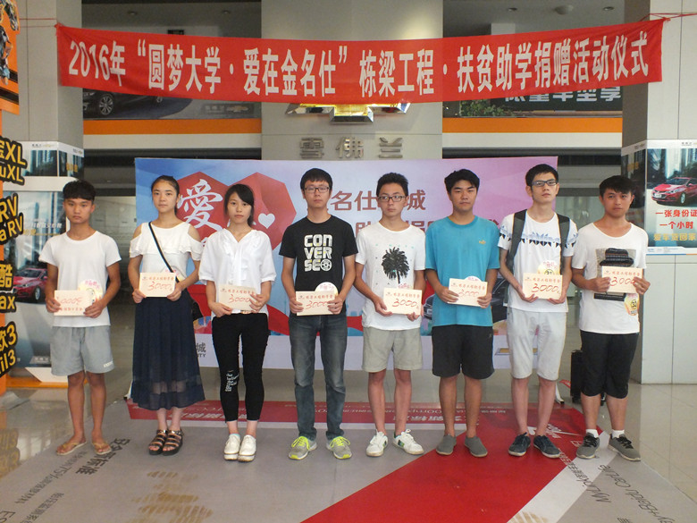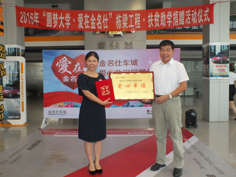 2016年8月18日上午,由四川省扶贫基金会乐山市分会、市扶贫开发协会和乐山金名仕集团联合举办的2016“圆梦大学·爱在金名仕”栋梁工程·扶贫助学捐赠仪式在乐山金名仕集团举行。