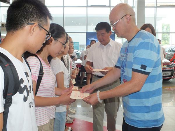 乐山金名仕集团现场为40位贫困大学新生每人发放了3000元助学金,帮助这些学子迈入向往已久的大学校园。