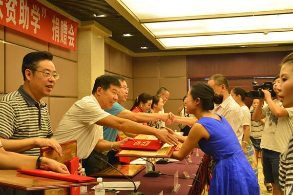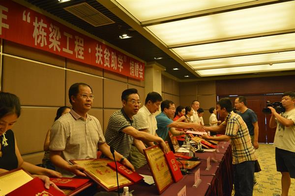 乐山市2016年“栋梁工程·扶贫助学”捐赠会现场为爱心企业颁发铜牌和荣誉证书